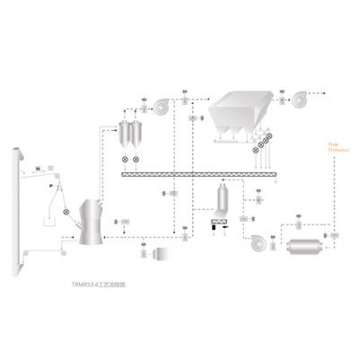 NOTA: Humedad del alimento < 7 % (se seca con gas caliente del precalentador): humedad del producto final < 0,5 %; pureza R80 um = 12%-- 18%2: El tamaño de alimentación se refiere al tamaño de partícula del 95% de rendimiento.